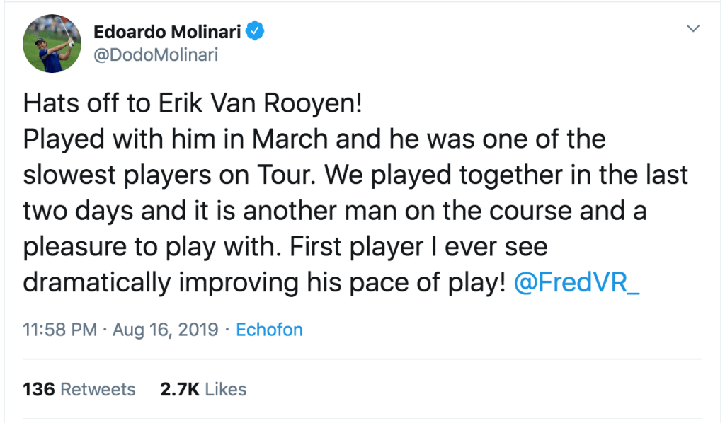 He’s also done something very few golfers have done – which is start off as a slow player, and worked to intentionally improve on that.