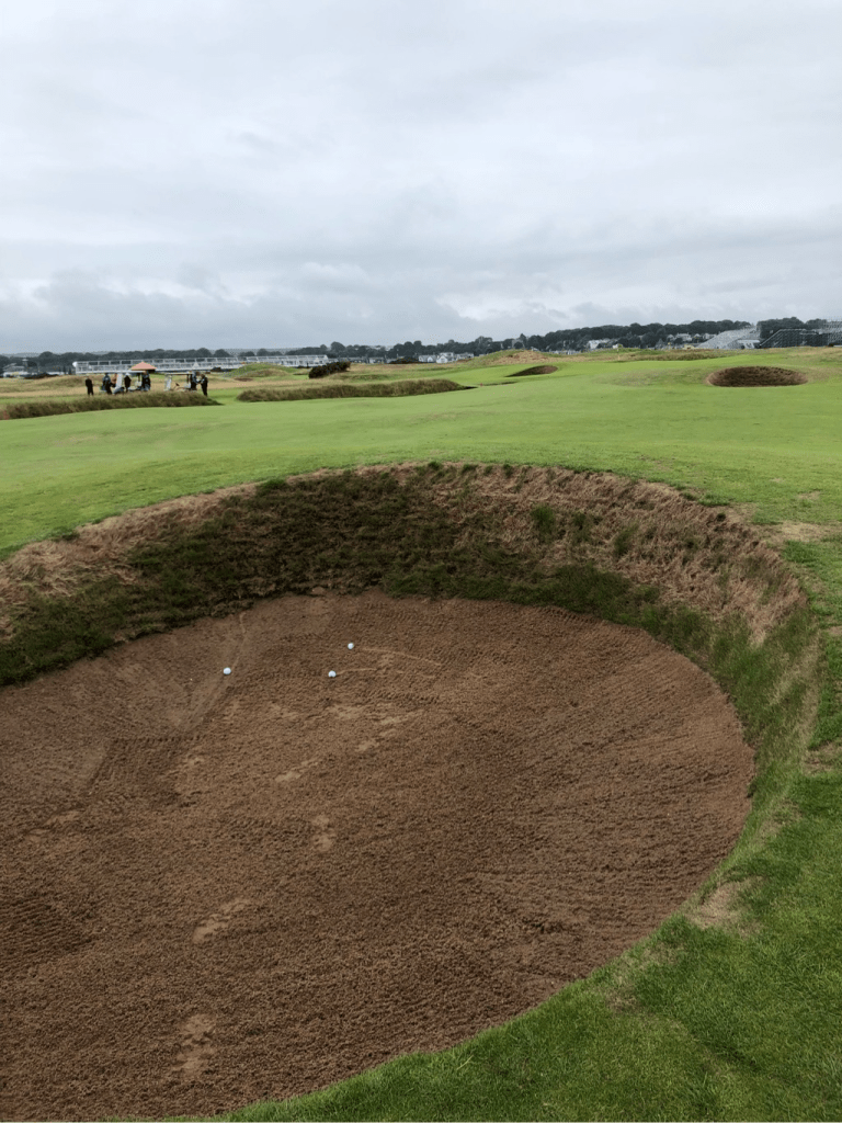 As with The Old Course, caddies are essential here (especially in massive downpours like we had, though the photos hardly reflect this). We also had the grandstands still up on 17 and 18 and I gained a lot of respect for Jean Van de Velde after seeing just how hard the 18th is. My word. (I also learned a very good lesson that “water resistant” is not enough. I purchased better rain gear the next morning.)
