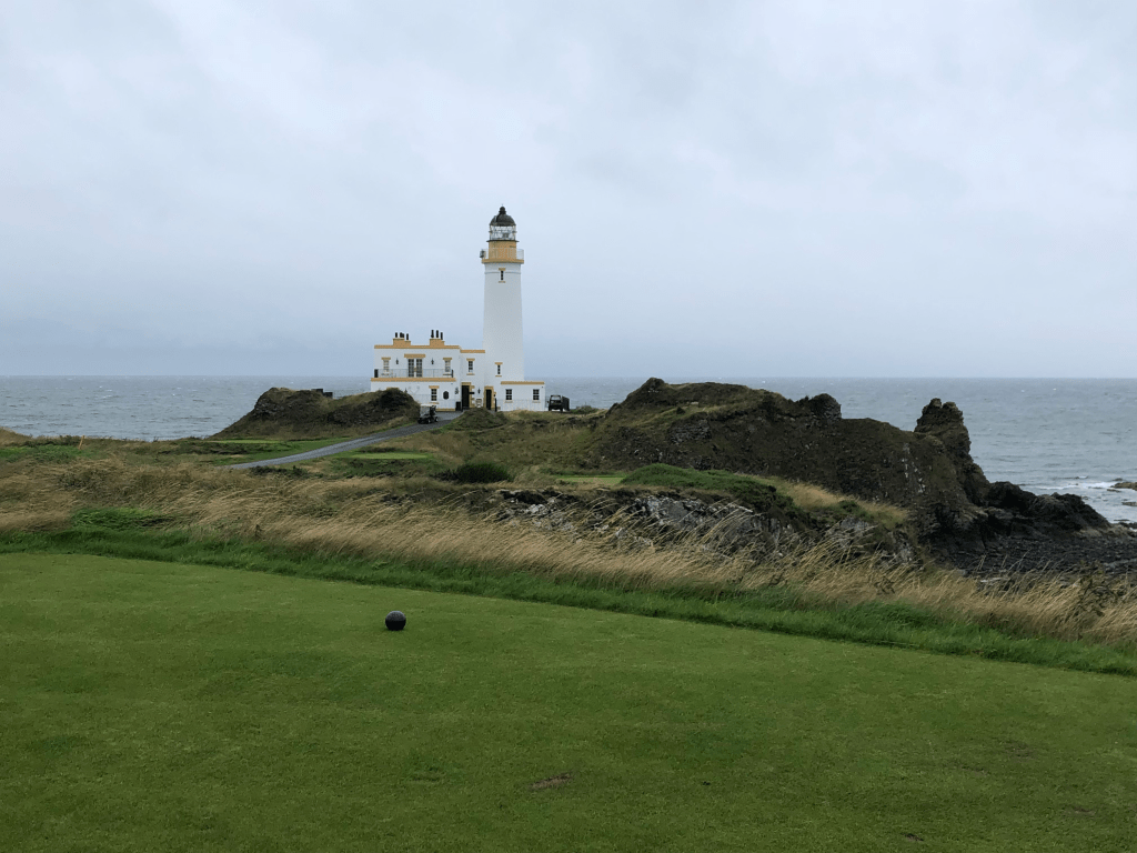 And man … I’m so glad we played it. I mentioned in my last post about Troon that we had 30-35 mph winds off the coast. By the time we reached the top of the course, you are asked to stop at the halfway house – which is the lighthouse in the picture below, and also happens to be the birthplace of Robert the Bruce. The gentleman directing us to the halfway house begrudgingly admitted the winds were blowing at 40mph at least. It was … crazy.