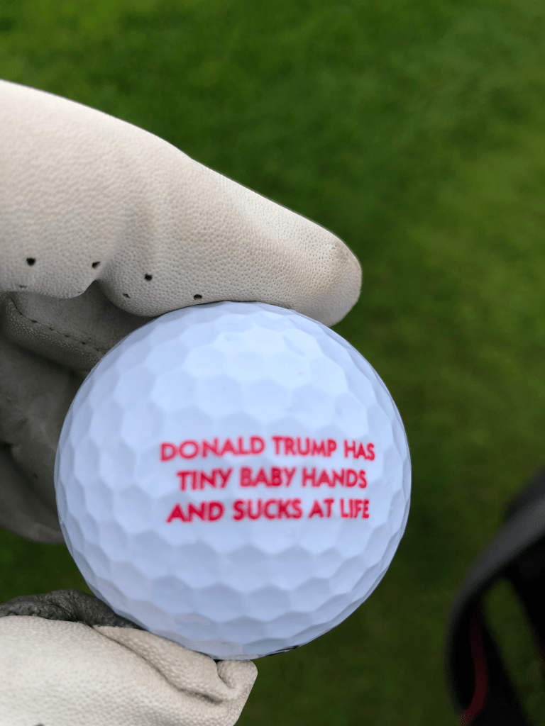 But it highlights a bigger problem folks like me who like golf — Trump is impossible to get away from. (And not just because President Plump is “morbidly obese,” as many people have been saying.) Not only does he own a ton of courses, but quite clearly, golf leans more conservative than most sports. I’m not sure if there’s ever been a study of this, but I’d have to guess that only NASCAR would be likely to be more Republican and that’s as much of a fact of geography than anything else. I played the masterpiece that is the Ailsa Course at Turnberry in Scotland after some deep soul searching, and it ended up being my 3rd favorite course I’ve ever played. And what I said at the time is that if Trump ran and treated the country the way he does that golf course, I’d have waaaay fewer complaints about him. The place is majestic, if predictably garish inside the hotel in places, etc. And yes, like many high priced golf courses, it’s far from accessible and open in the way I’d like. But honestly? It’s a better vibe than Muirfield puts out to the general public. Plus, I made custom golf balls that I both intentionally and unintentionally left around the property – and our main man AC made his first hole-in-one using one!